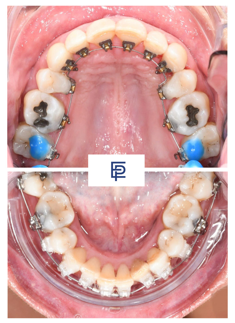 Appareillage fixe lingual supérieur et externe inférieur céramique
